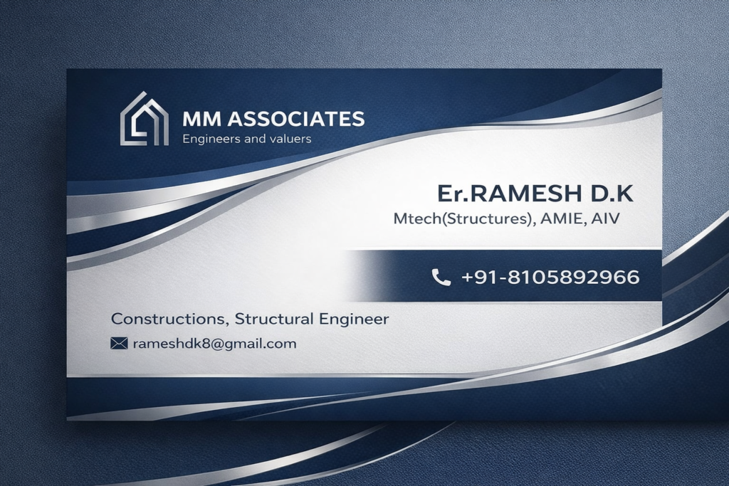 Er. Ramesh DK is a qualified Civil and Structural Engineer with a BE in Civil Engineering and an M.Tech in Structural Engineering from VIT University, Vellore, with expertise in architectural planning and structural design.At M M Associates, he specializes in structural analysis, building design, project estimation, and property valuation, delivering reliable engineering solutions for safe and durable construction. 🏗️